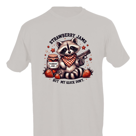 Strawberry Jams But My Glock Don't Funny Raccoon T-Shirt