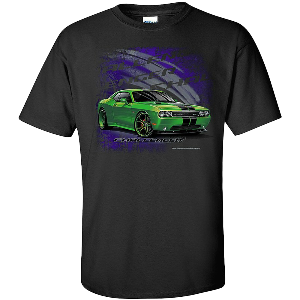 This shirt features the badass 2011 Green with Envy Dodge Challenger. Made of soft style 100% pre shrunk cotton.