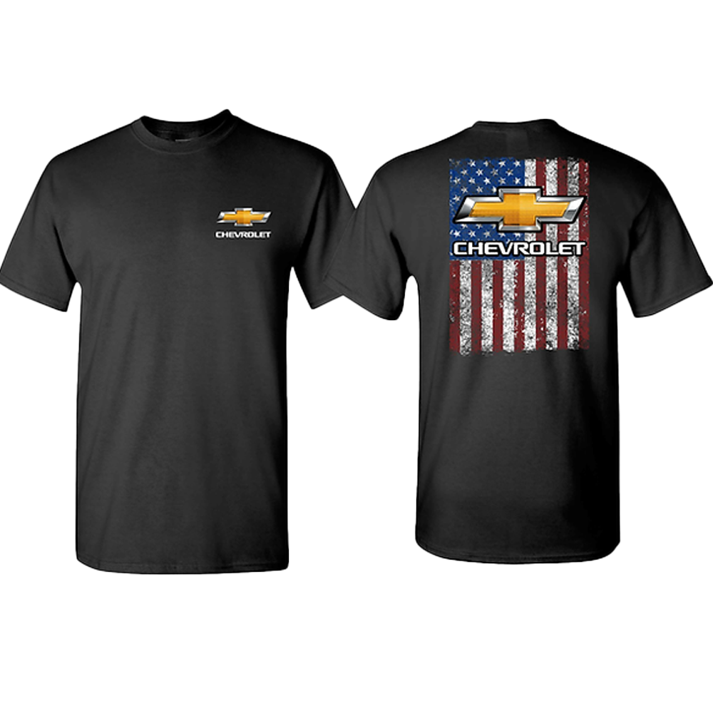 Check out this black patriotic Chevrolet t-shirt. This pre-shrunk t-shirt shows your love for our country as well as your love for Chevrolet!