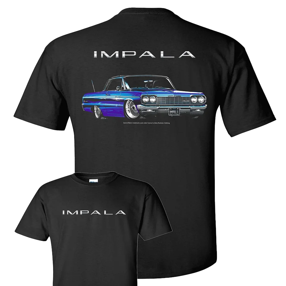 Left chest logo and full back features a classic '64 Impala. This modern shirt will be a new favorite. Made of soft style 100% preshrunk cotton.