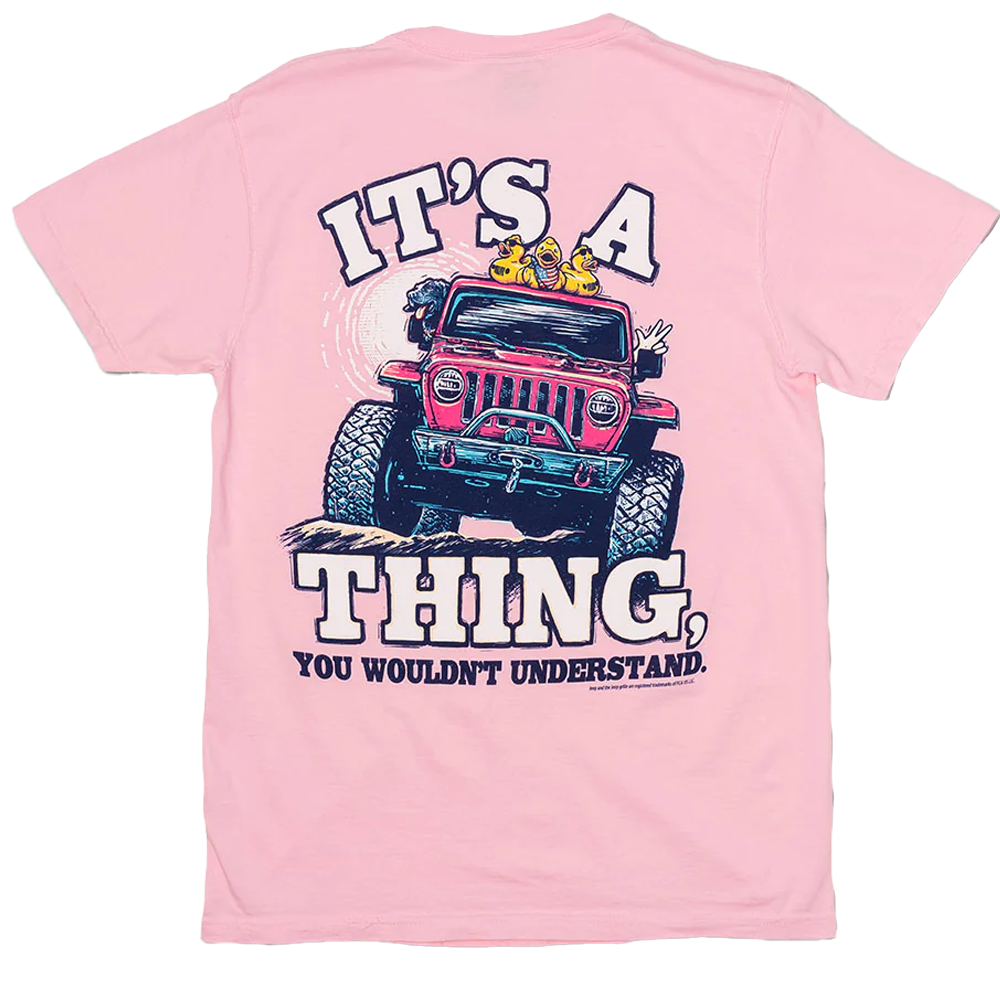 If you've ever driven a Jeep®, you know what it's all about. We love this graphic featuring all our favorite Jeep® traditions. This unisex garment-dyed tee is soft & durable, & ready for adventure!