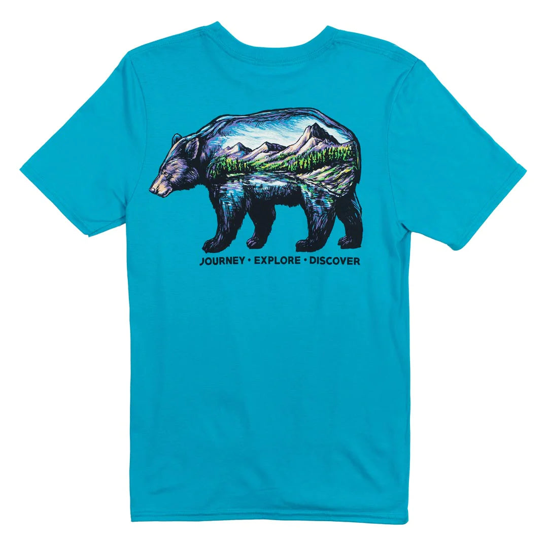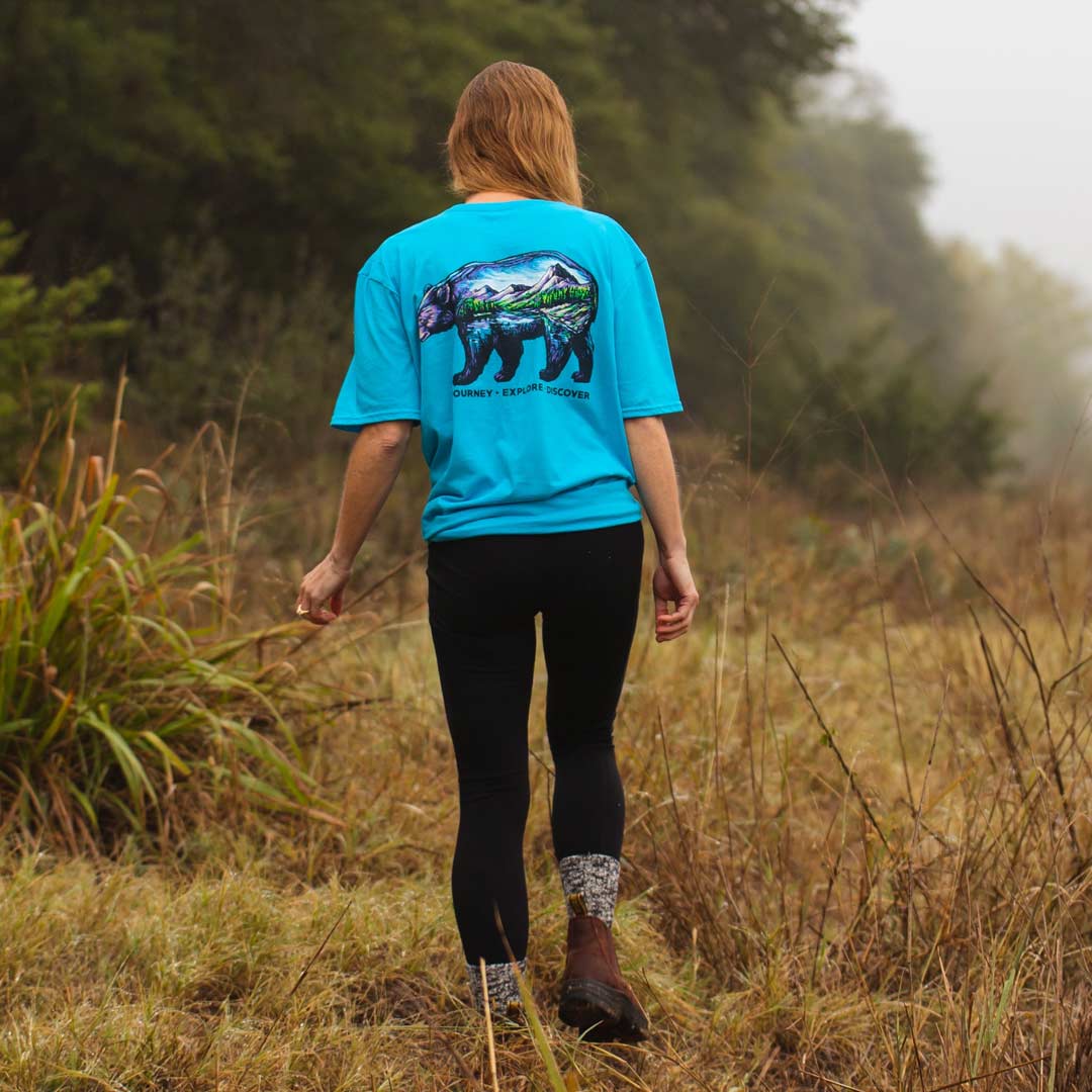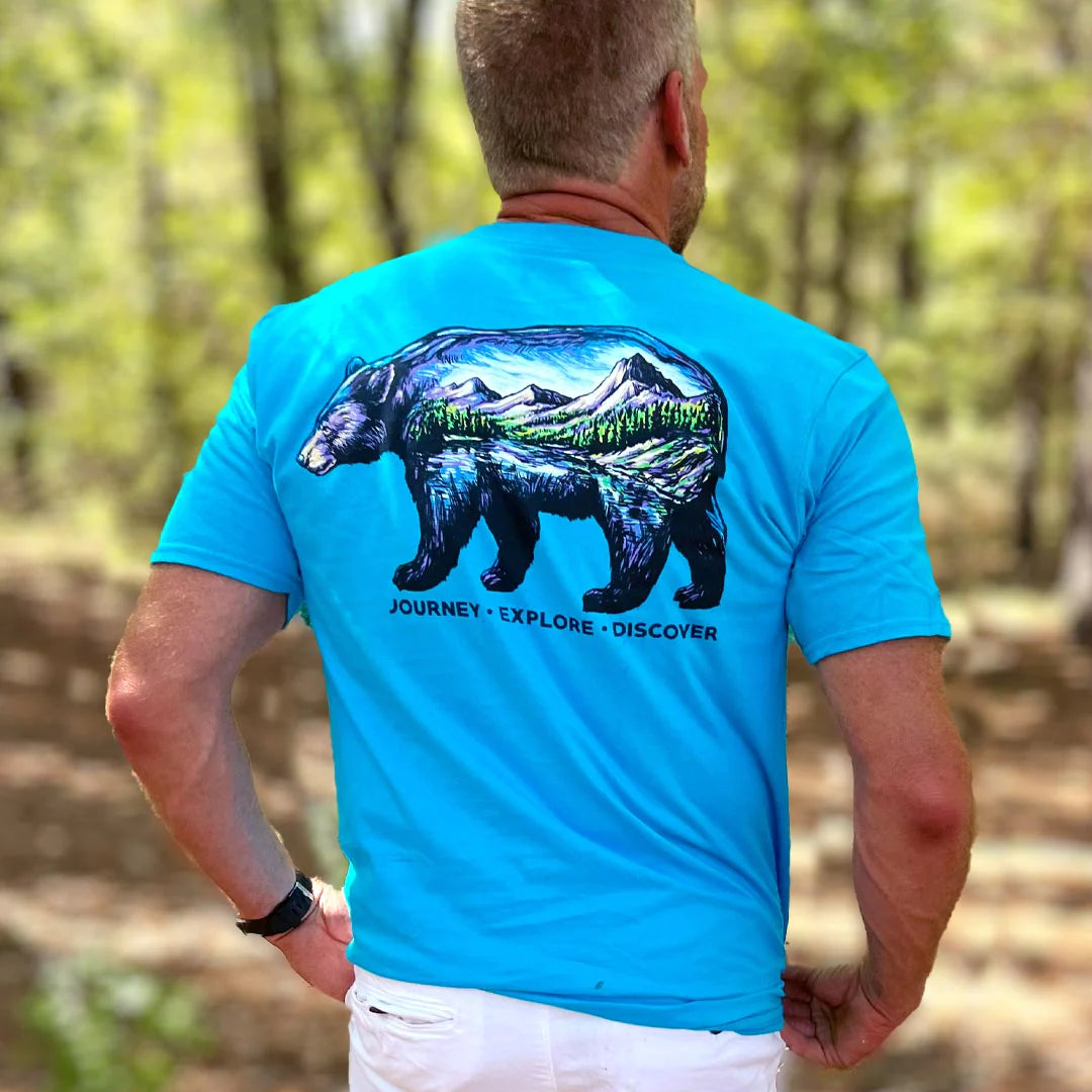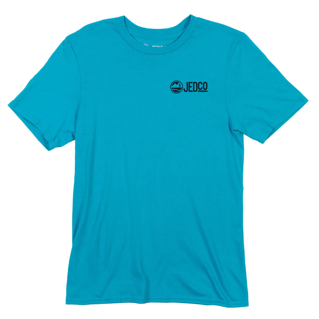 The Black Bear Mountain T-Shirt features a picturesque landscape in the shape of the iconic black bear on the back and the JEDCo logo on the left chest. This lightweight shirt is super-soft and made of 100% cotton.