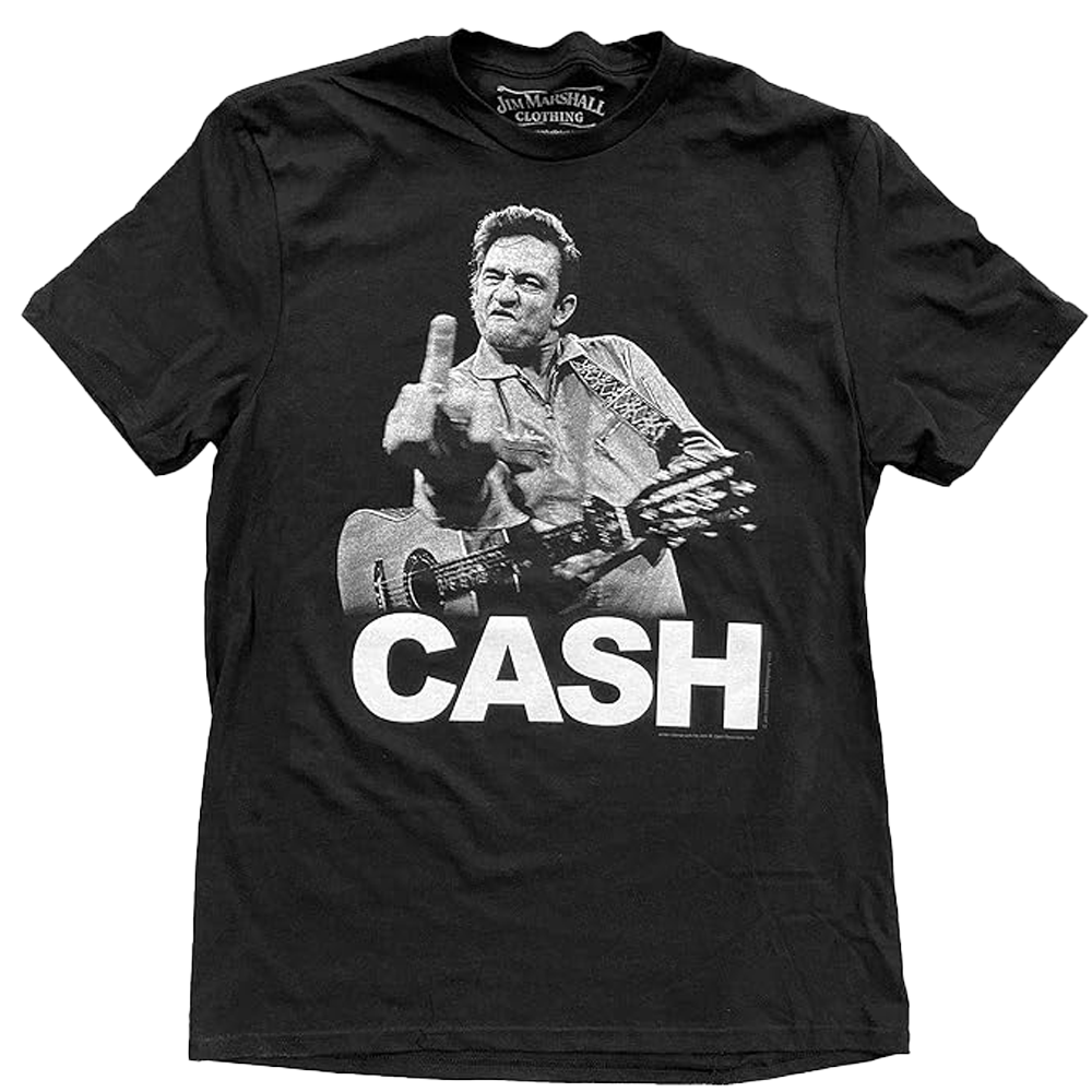 Printed and sold in the USA by Jim Marshall Clothing. Officially licensed merchandise. Produced in partnership with the Johnny Cash Estate. This tee rocks with comfort. 4.5-ounce, 100% soft spun cotton, 30 singles. The Man In Black. Johnny Cash was one of the most influential musicians of the 20th century, known for his deep, distinctive bass-baritone voice and for his dark clothing, which earned him the nickname “The Man in Black." Much of Cash’s music echoed themes of sorrow, moral tribulation and redemption, especially in the later stages of his career. Jim Marshall followed Cash throughout his career, getting unique access to the great man’s performances and work.