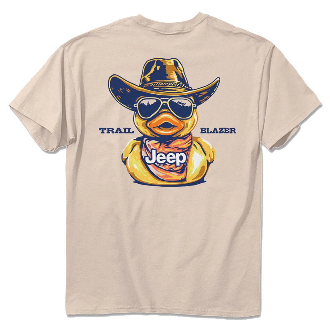 Officially Licensed Jeep Merchandise. Show off your Jeep pride with the Duck Trail Blazer T-Shirt. This comfy tee features a fun trail-blazing duck with easter eggs hidden in the design.
