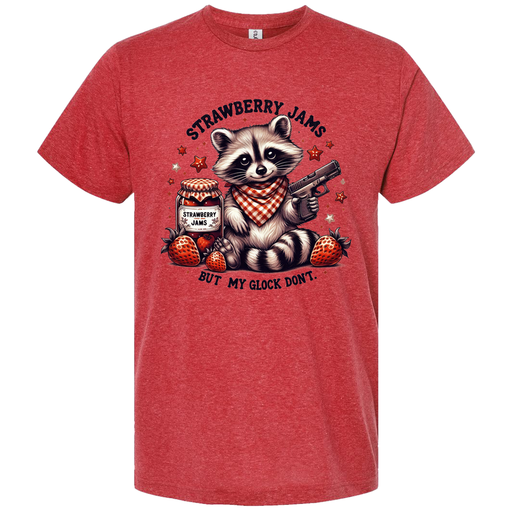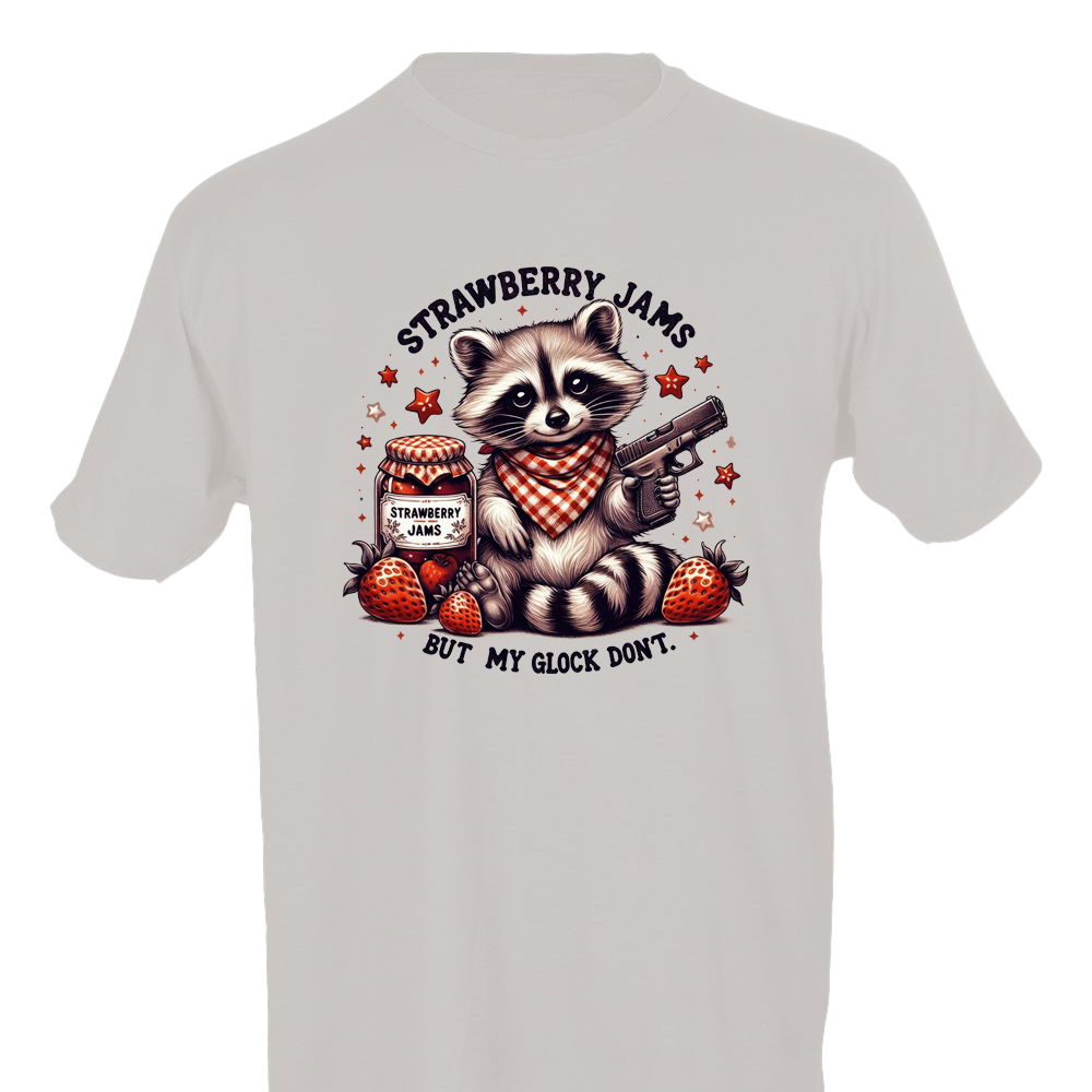 Strawberry Jams But My Glock Don't Funny Raccoon T-Shirt